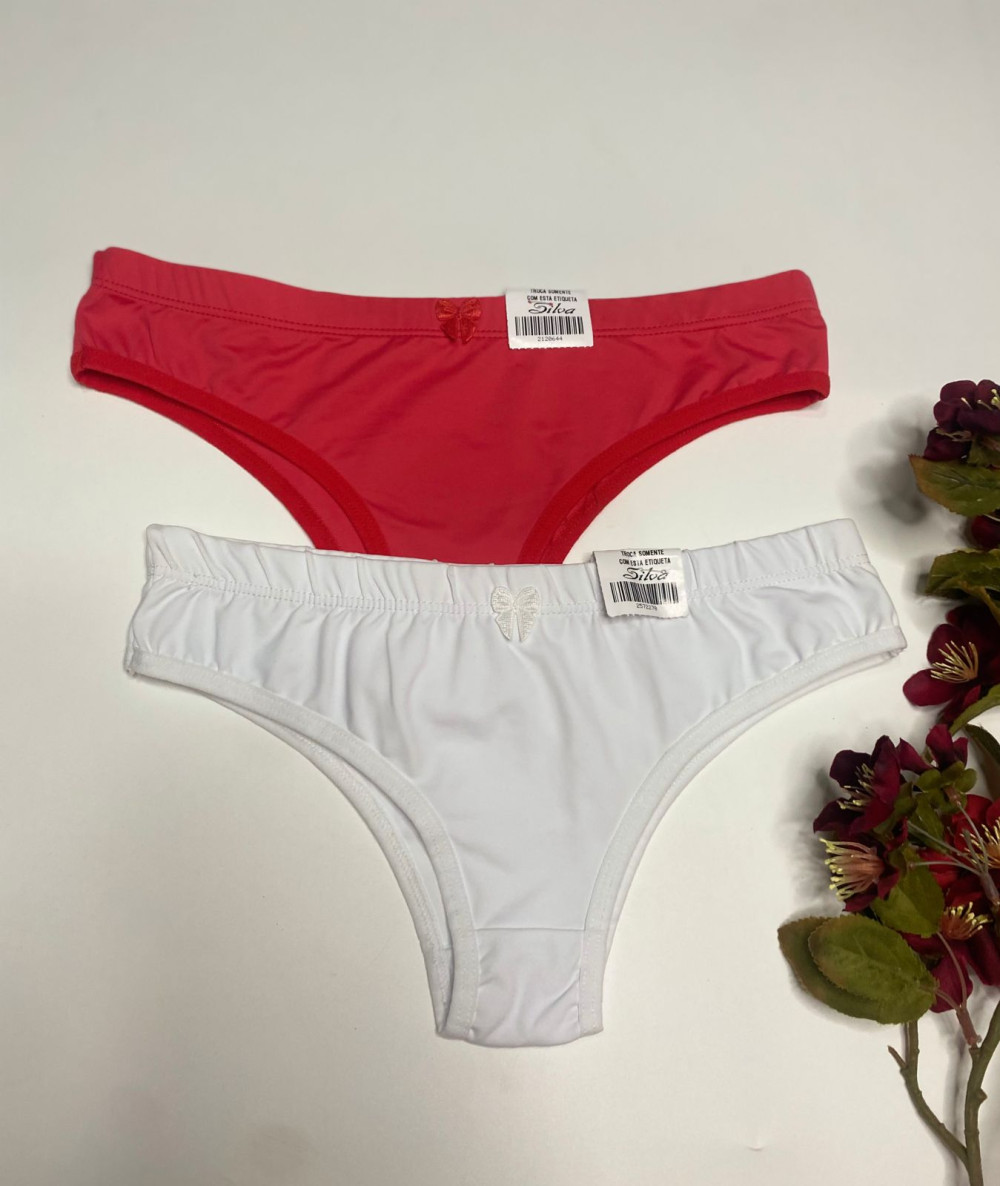 Calcinha feito em microfibra (88% poliamiada e 12% elastano)Calcinha com víes na perna e com cós rebatido.*As cores apresentadas na tela podem sofrer variações para a peça física.*Em caso de escolha da opção ESTAMPADA, a estampa será variada, de acordo com disponibilidade de estoque.